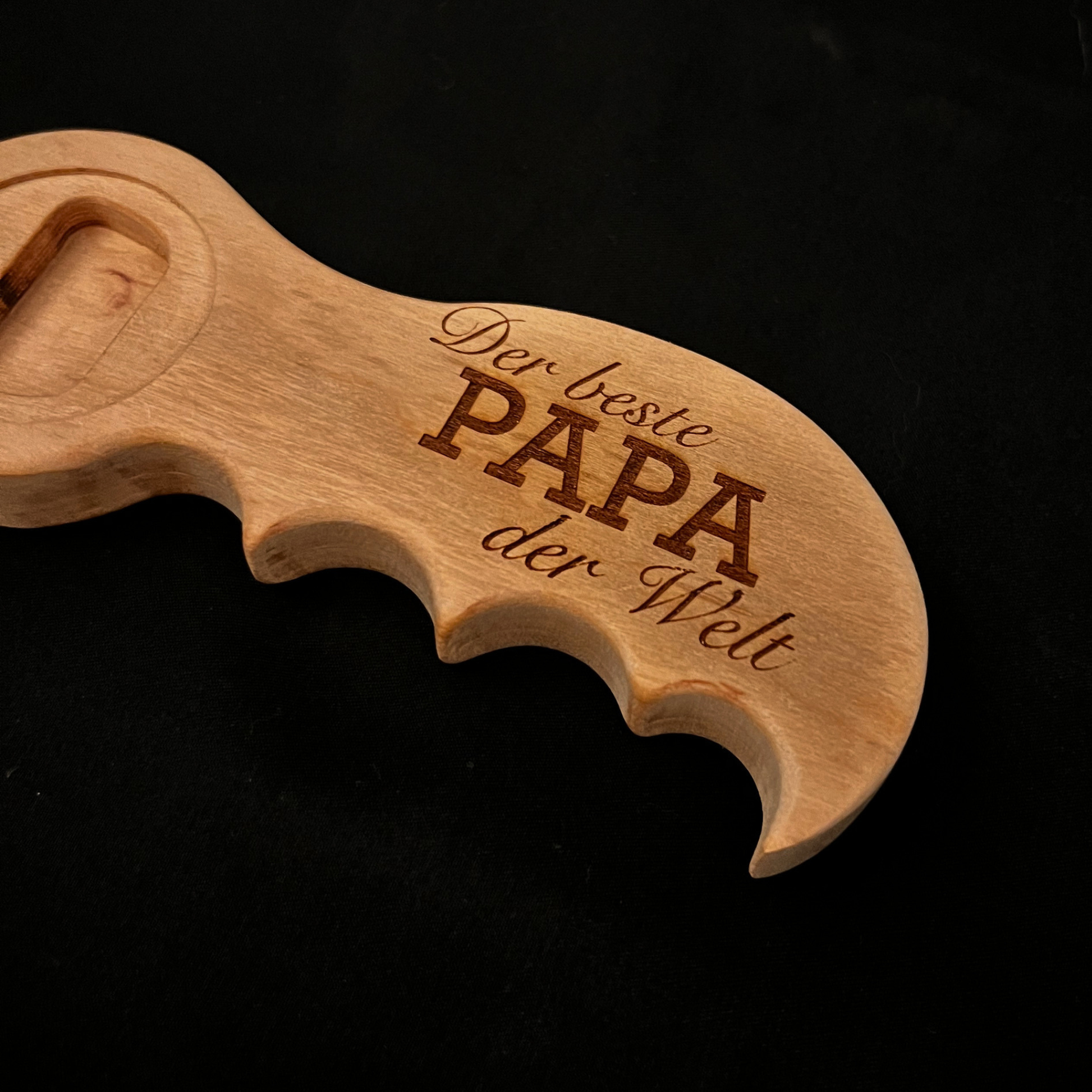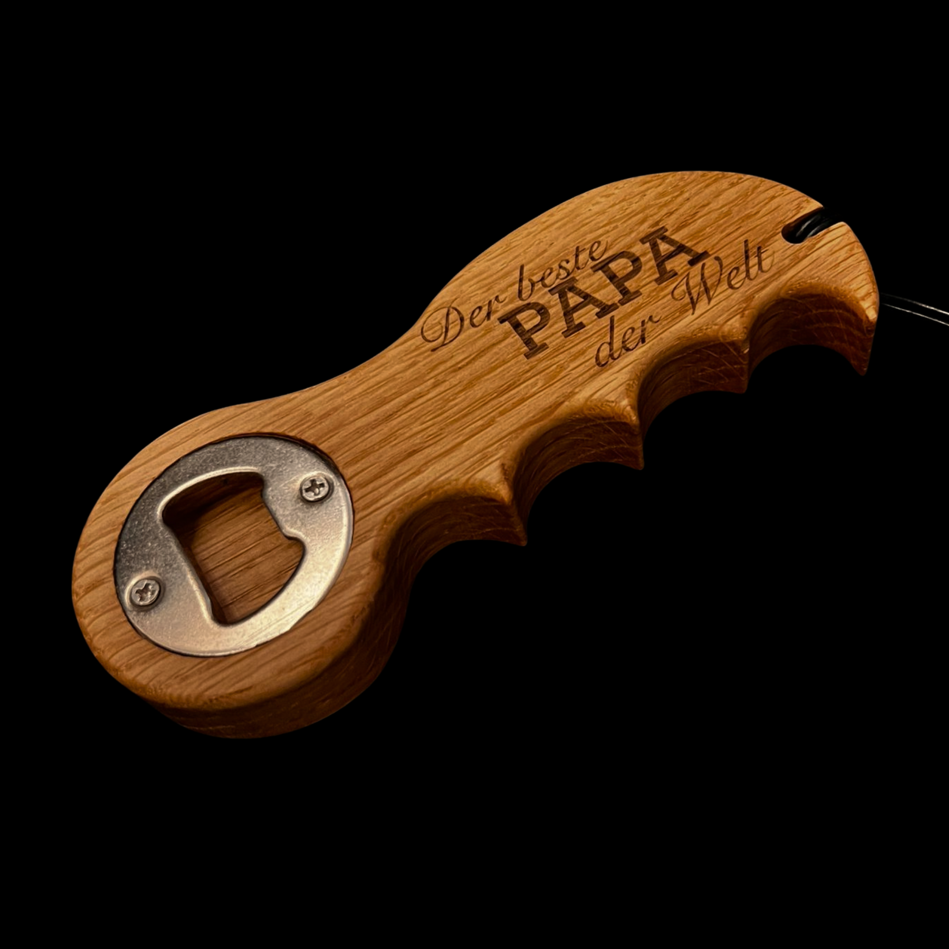 Ein hochwertiger Flaschenöffner aus Eiche oder Kirsche, der nicht nur durch Qualität überzeugt, sondern vor allem durch seine Botschaft: Danke, Papa – du bist der Beste! 💙
