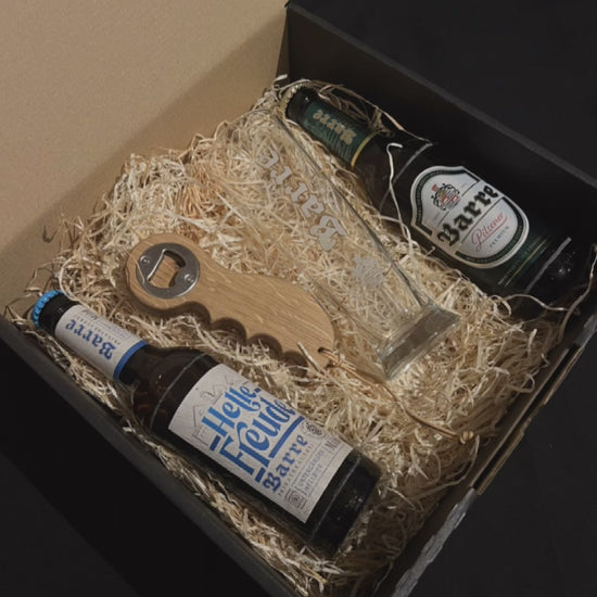 Die ideale Geschenkidee für Bierliebhaber: Unsere hochwertige Geschenkbox „Barre Biergenuss“ kombiniert zwei ausgewählte Bierspezialitäten mit passendem Markenbierglas und einem stilvollen Holz-Flaschenöffner. Präsentiert in einer edlen Box mit dekorativer Holzwolle – sofort bereit zum Verschenken.